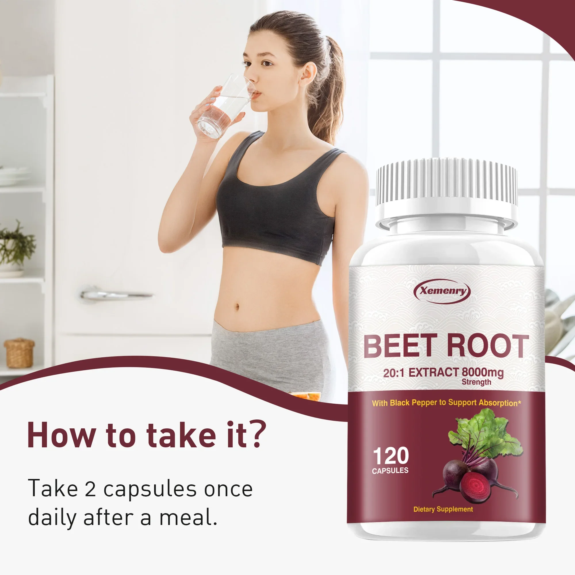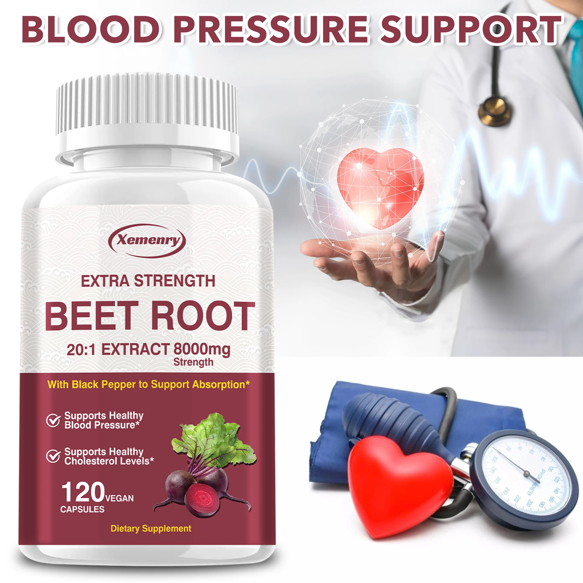 Beet Root Capsules – Supports Healthy Blood Pressure Levels, Promotes Circulation, and Enhances Absorption – 120 Capsules