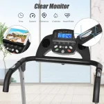 Space Saving Design & IPAD/Mobile Phone Holder — Goplus treadmill can be easily folded, with wheels it is easy for moving and storage. Put your mobile phone or Ipad on the holder, you can talk with your friends or watch movies when you work out on this treadmill.